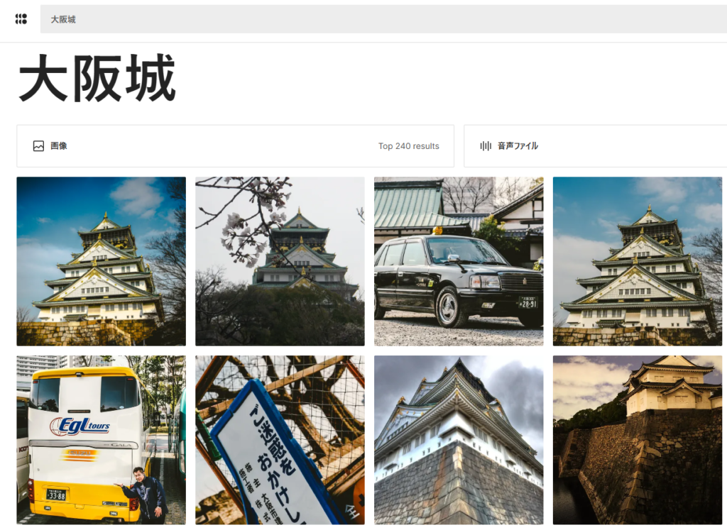 商用利用可能な素材サイトを対象に日本語で検索できるとはいえ、素材サイト側は英語表記となっているため、規約の確認の際は注意が必要です。また、結果画面には提携する有料素材サイトのサムネイルが含まれている場合もあります。