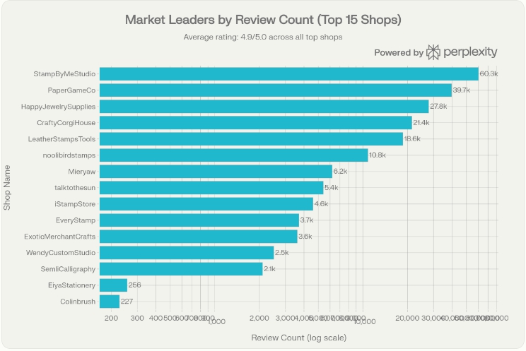 最新データの衝撃的な発見:トップ3ショップ(StampByMeStudio 60,300件、PaperGameCo 39,700件、HappyJewelrySupplies 27,800件)で合計127,800件のレビューを獲得しており、市場全体の約75%を占有しています。
